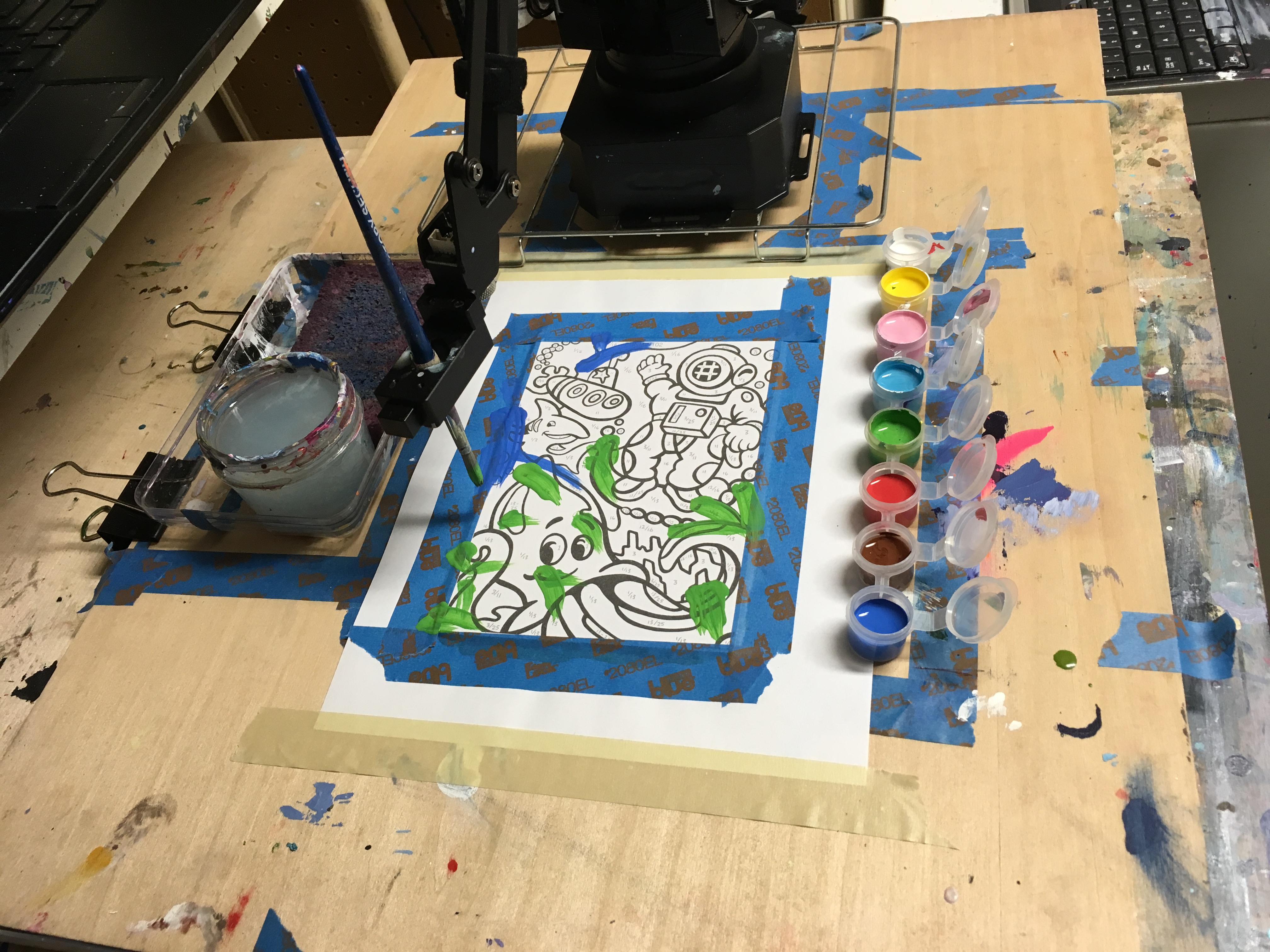 Progress photo of the paint by numbers getting painted by the robot.